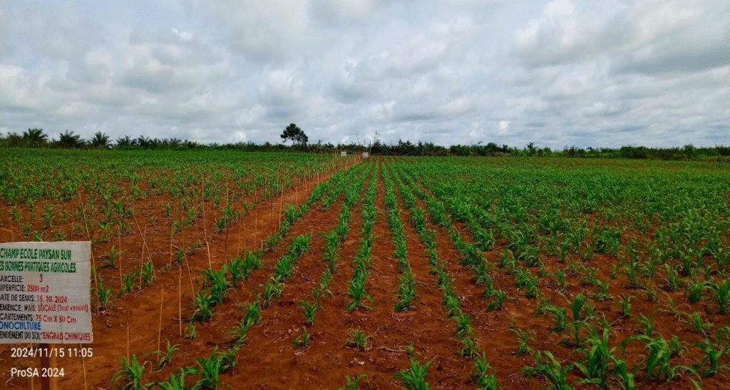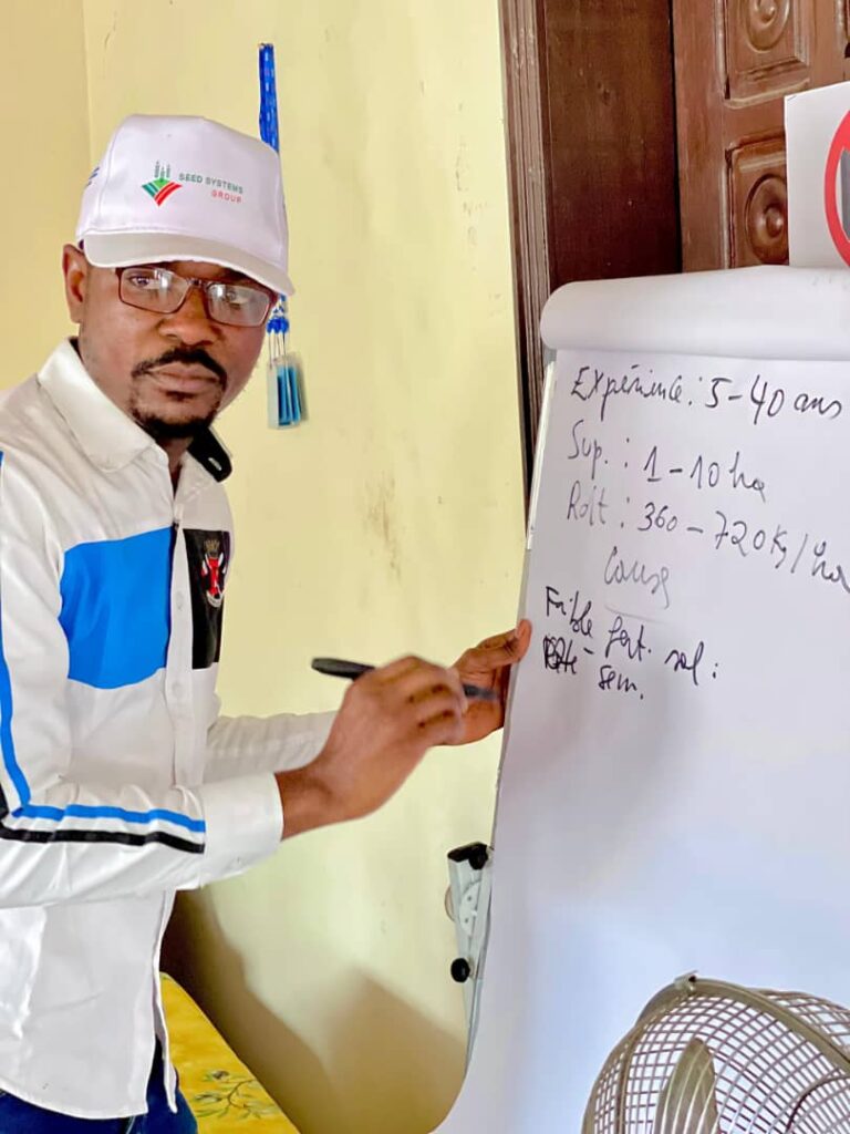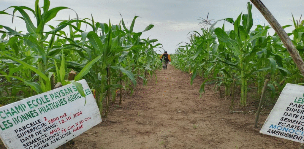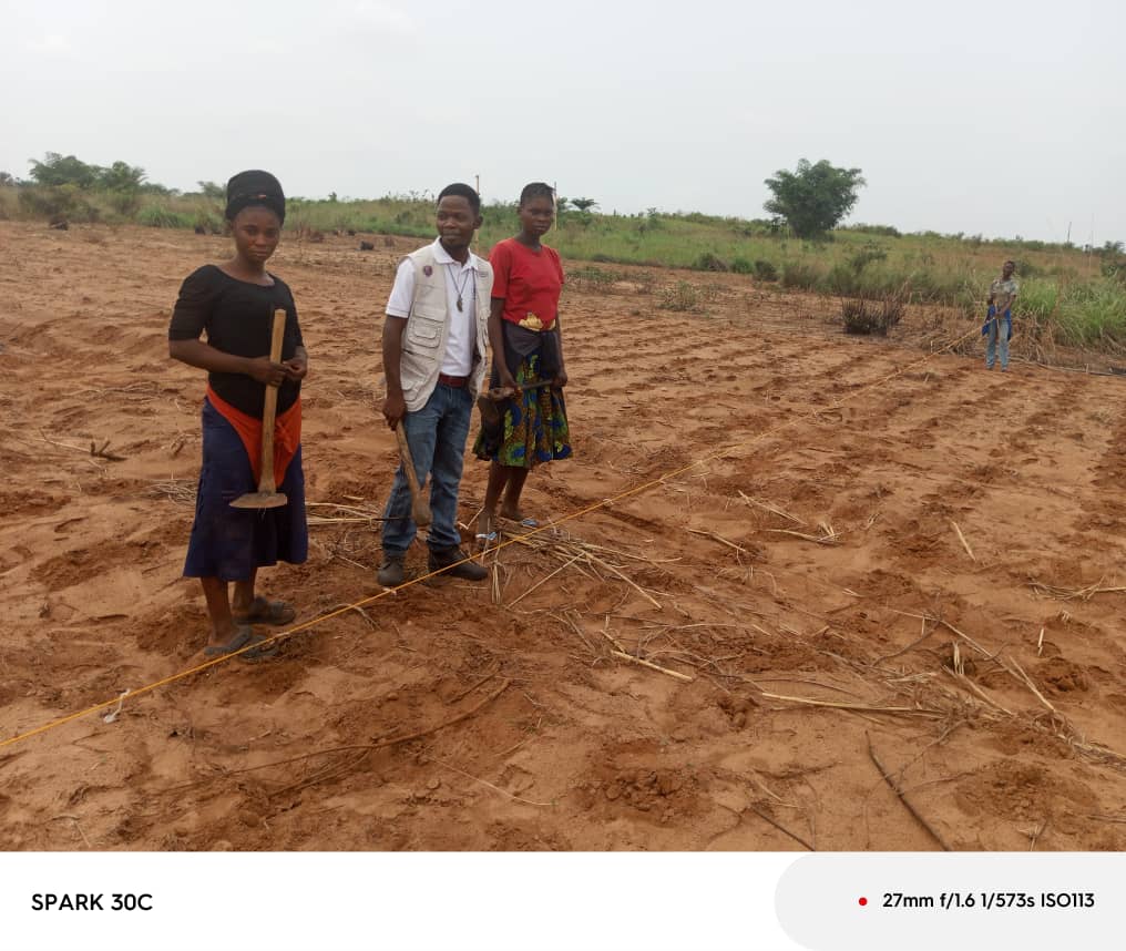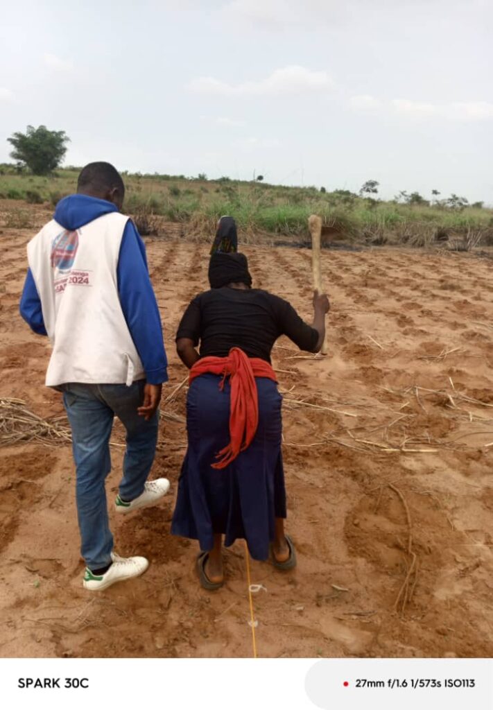 Les photographies ci-dessous montrent l’ingénieur agronome David Beya Bakalowabu de l’ODD qui accompagne une bénéficiaire d’un crédit agricol de la banque Equity-BCDC. Cette femme a fait labourer un champ de 20 hectares dans le territoire de Kabeya Kamuanga, dans la Province du Kasaï Oriental, pour la production de maïs (aliment de base) en RD-CONGO qui devient très rare. La variété de maïs planté est la variété améliorée mudishi.