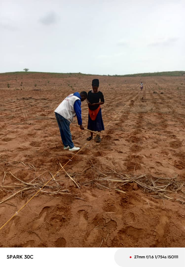 Les photographies ci-dessous montrent l’ingénieur agronome David Beya Bakalowabu de l’ODD qui accompagne une bénéficiaire d’un crédit agricol de la banque Equity-BCDC. Cette femme a fait labourer un champ de 20 hectares dans le territoire de Kabeya Kamuanga, dans la Province du Kasaï Oriental, pour la production de maïs (aliment de base) en RD-CONGO qui devient très rare. La variété de maïs planté est la variété améliorée mudishi.